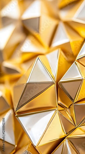 gold, silver, geometric, shape, texture, metallic, luxury, faceted, abstract, background, design, pattern, shiny, bright, closeup, macro, modern, elegant, triangle, polyhedron, three, dimensional, surface, detail, rich, opulent, glamourous, illuminated, reflective, sparkling, dazzling, artistic, contemporary, style, decoration, premium, craft, festive, celebration, ornate, intricate, complex, quality