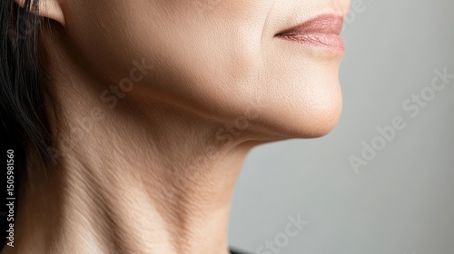 woman, neck, wrinkle, skin, close, up, detail, mature, ageing, line, profile, portrait, light, grey, background, side, view, facial, texture, human, portraiture, female, asian, natural, shadow, detail, aged, skincare, health, beauty, closeup