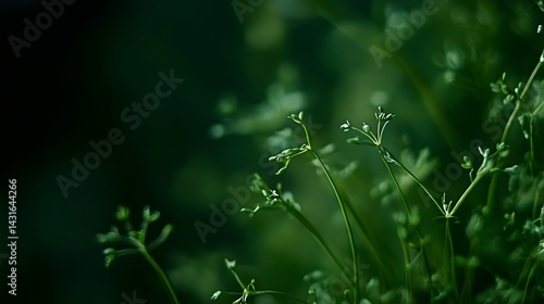 Close up view of vibrant green microgreens with thin stems and small leaves captured with contemporary cinematic lighting and dramatic shadows creating a moody chiaroscuro effect