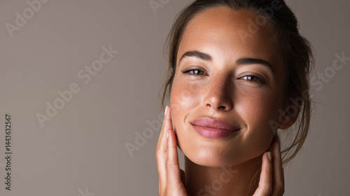 woman, person, face, skin, portrait, light, skincare, beauty, wellness, health, colours, closeup, facial, expression, girl, female, people, young, portraiture, image, photo, studio, indoor, smiling, hand, touch, isolated, model, natural, tender, sharpened, elegant, simple, diverse, smooth, caucasian, individual
