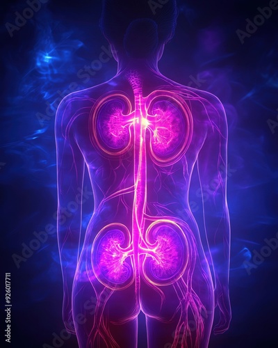 Close up Woman with Glowing Renal Veins for Healthy Lifestyle Concept