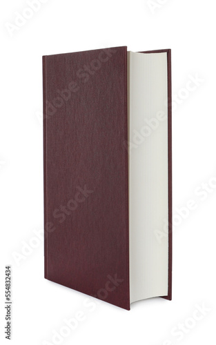 Closed book with brown hard cover isolated on white