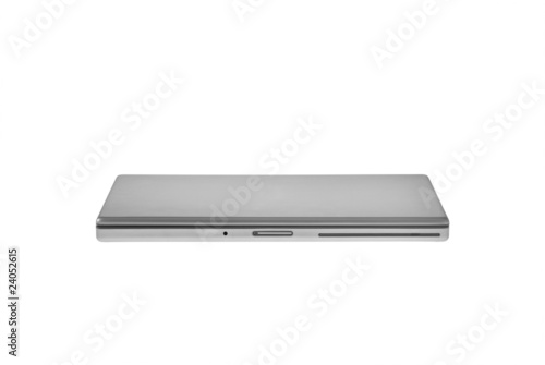 laptop, isolated, screen, keyboard, display, computer, technology, business, silver, background, thin, front, electronic, white, modern, mobility, portable, notebook, closed, metal