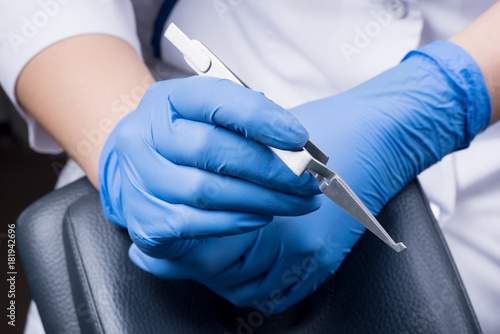 reverse, tweezer, instrument, tool, dentist, doctor, hold, orthodontist, orthodontic, dental, braces, bracket, dentistry, treat, clinic, dentistry, expression, blue, glove, white, hand, health, care, medicals, medicine, professional, oral, painless, honed, solution, female, woman, adult, clean, closeup, examine, metal, macro, toothache, clamp, mosquito, brush, teeth, iron, treatment, working, cutter, therapy