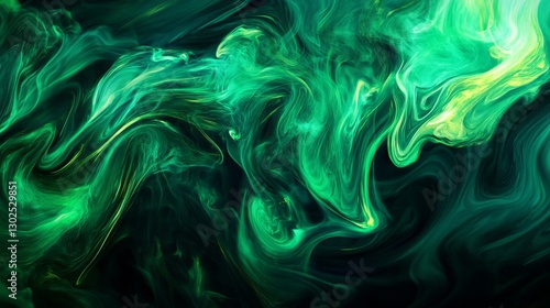 Closeup digital painting of swirling green smoke on a black background with dynamic brush strokes