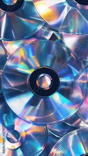 Close-up digital wallpaper with shiny compact discs and iridescent light play, ideal for tech-inspired backgrounds.