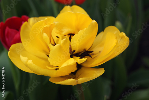 tulip, flower, spring, yellow, garden, nature, red, tulip, green, plant, flower, orange, flora, blossom, bloom, beauty, field, floral, colours, macro, leaf, beautiful, park, background, natural, fresh, closeup, open, unfolded, sunny, pistil, stamen, lemon, optimistic, symbol, separation, decorative, closeup