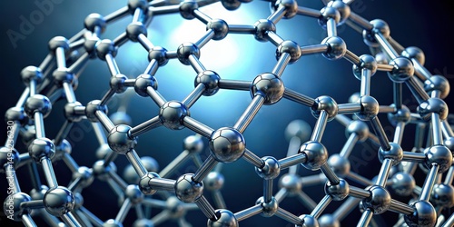 Close-up image of a buckyball molecule with carbon atoms arranged in a spherical pattern, chemical bonds, spherical symmetry