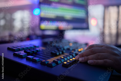 colourful, mixer, mixing, mix, sound, closeup, microphone, equipment, hand, audio, track, tuning, workspace, control, music, recording, buttons, technology, console, interaction, stereo, performance, entertainment, creative, interface, device, studio, tech, production, digital, editor, live, setting, monitor, workflow, innovation, clarity, engineer, technician, professional, signal, analysis