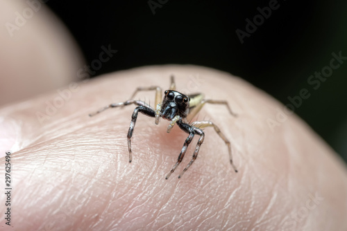 arachnid, background, beautiful, black, bug, closeup, eye, finger, garden, green, insect, jumper, leaf, leg, macro, natural, nature, park, predator, space, species, spider, spider's web, web, wild, wildlife, wording
