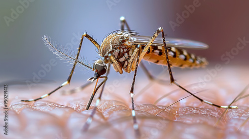 Close-up mosquito in skin, Mosquito sucking human blood , Aedes aegypti Mosquito