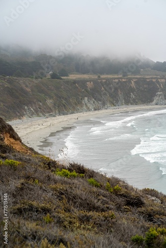 island, rocky, ocean, huge, horizon, cloud, white, fluffy, small, rolling, expanse, foggy, fog, weather, cold, water, us, america, north, california, beach