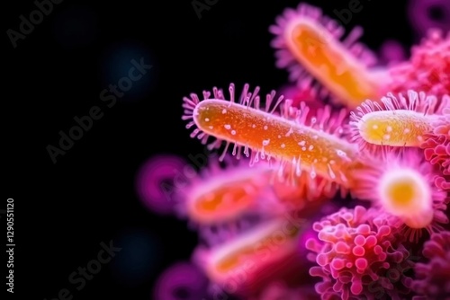 Close-up of a bacteria colony with pink cells and dark background for science use