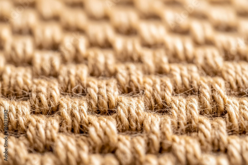 Close-up of a beige woven jute texture, representing eco-friendly materials and sustainable home decor choices