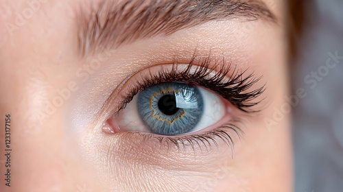 eye, blue, eyelash, closeup, beauty, cosmetic, iris, skin, make-up, woman, face, macro, lash, vision, look, gaze, girl, portrait, model, eyelash, eyesight, pupil, view, glance, stare, sharpened, detail, close, optic, human eye, pretty, attractive, feminine, healthy, natural, bright, clear, young, person, female, opthalmology, aesthetic