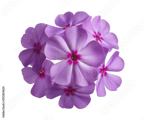 Close-up of a Bouquet of Delicate Lavender Phlox Flowers Isolated on White Background