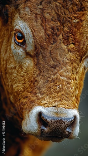 Close-up of a bull's eye, front on angle, highlighting its strong and powerful gaze