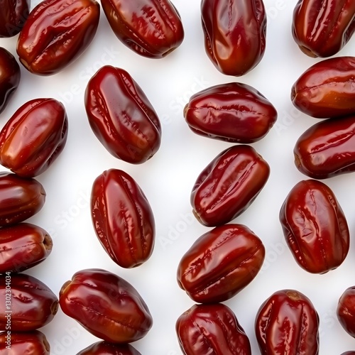 closeup of a bunch of dates on a white background, dates are usually served when breaking the fast during of Ramadan
