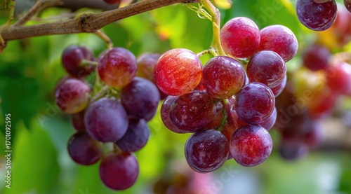 grape, red, ripe, bunch, vine, hanging, fruit, fresh, juicy, nature, garden, closeup, delicious, healthy, organic, sweet, cluster, vibrant, hydratation, food, nourishment, closeup, food photography, summer, growing, plant, leaf, tree branch, stem, eos, sweetness, natural