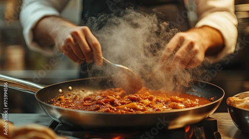 chef, cooking, food, kitchen, pot, pan, stir, steam, smoke, sauce, vegetable, tomatoes, onion, pepper, simmer, heat, stove, burner, culinary, epicure, delicious, favor, ingredient, meal, dish, receipe, dinner, lunch, dinner, eatery, home, hand, finger, utensil, spoon, silver