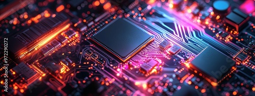 circuit, board, motherboard, computer, technology, electronic, component, microchip, processor, chips, central processing unit, jampacked, hardware, digital, datum, network, connectivity, trace, line, wire, connection, soldering, led, light, glow, red, blue, purple, neon, futuristic, abstract, macro, texture, pattern, background, design, engineering, science, innovation, industry, future, development, power, speed, processing, computing, automation