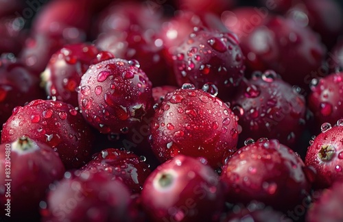 Close-up of a cluster of red berries glistening with water droplets.