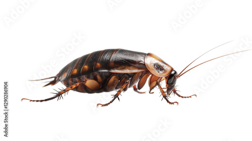 Close-up of a cockroach crawling on a surface, highlighting its detailed anatomy