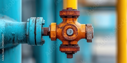 Close-Up of a Corroded Valve on an Abandoned Industrial Structure, Highlighting Decay and Neglect