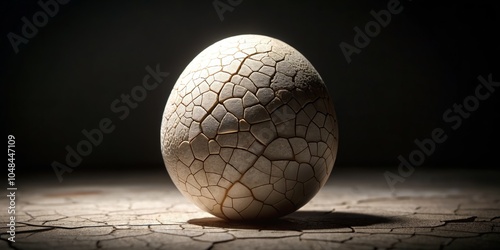 Close-up of a Cracked White Egg with Intricate Thin Cracks in Low Light Photography Capturing Texture and Detail for Food and Nature Enthusiasts