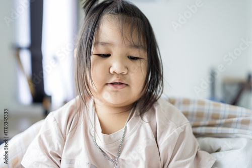 Close-up of a cute little Asian girl's face smiling happily,Portrait of young cute girl.