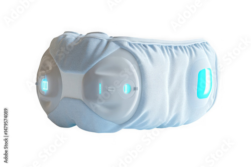 diaper, futuristic, white, blue, glowing, technology, innovative, design, closeup, baby, care, product, modern, clean, comfort, absorbent, hygiene, infant, protection, soft, medicals, health, appliance, neon, electronic, device, wearable, sensor, monitoring, transparent, digital, smart, textile, this, image