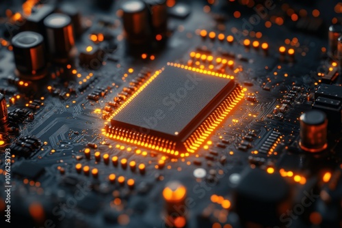 circuit, board, chips, processor, central processing unit, microchip, technology, electronic, hardware, digital, datum, processing, computing, network, connection, innovation, future, progress, modern, science, engineering, abstract, background, design, pattern, texture, detail, closeup, macro, light, glow, orange, black, dark, futuristic, artificial, intelligence, power, speed, performance, system, device, component, integrated, communication, control, automation, industrial, electrical