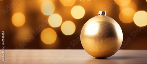 Closeup of a golden ball Christmas decoration with a blurred background perfect for copy space image
