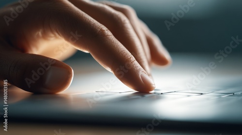finger, hand, touch, surface, texture, skin, nail, closeup, minimal, design, tactile, smooth, gentle, light, shadow, dark, grey, blue, abstract, object, digital, technology, interaction, contact, pressure, sense, feeling, perception, detail, photo, image, sharpened, macro, artistic, aesthetic, style, composition, visual, element, form