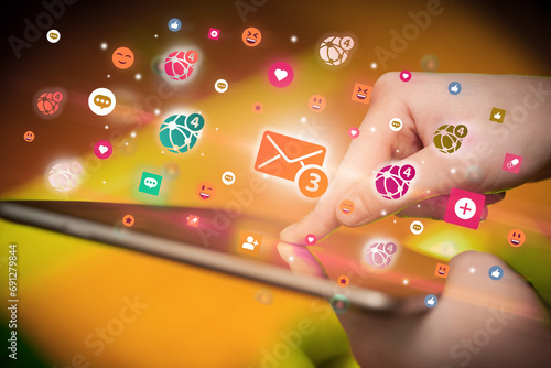 share, video, colourful, fun, chat, work, wireless, multimedia, international, holding, information, touch, community, lifestyle, cloud, contraption, person, closeup, finger, using, man, hand, digital, smart, marketing, icon, laptop, network, mobile, professional, people, media, web, app, screen, networking, global, online, concept, tablet, computer, connection, communication, business, social, technology, cyberspace