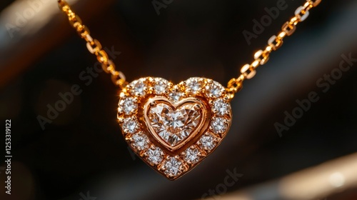 Close-up of a heart-shaped diamond pendant on a gold chain