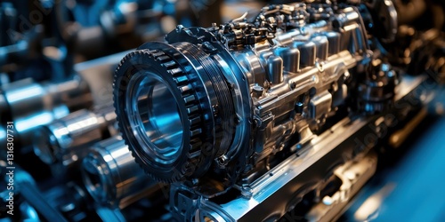Close-Up of a High-Performance Engine Assembled in a Modern Factory Setting