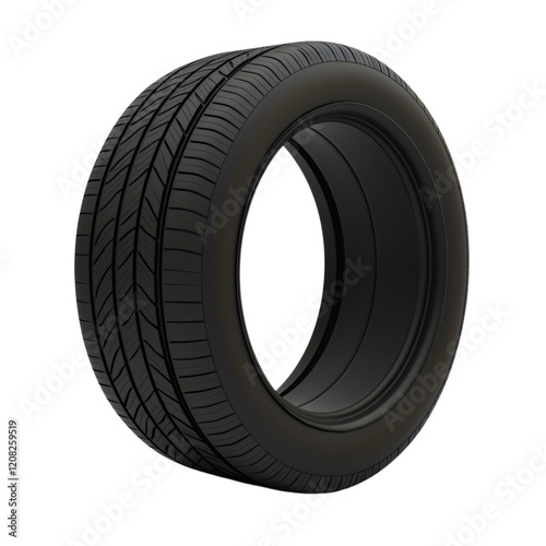 Close-up of a high-quality black car tire with detailed tread design, showcasing durability and performance, perfect for automotive maintenance, vehicle accessories, and tire industry themes