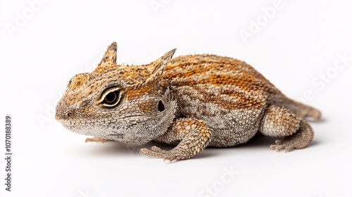 Close-Up of a Horned Lizard on White Background