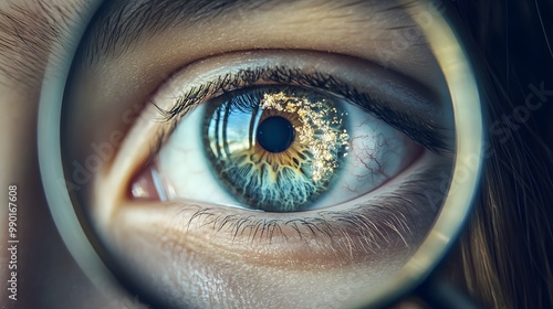 Close-up of a Human Eye with Gold Glitter on the Iris