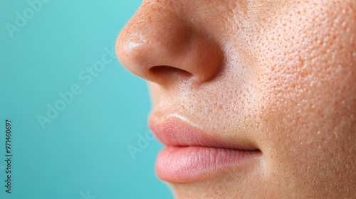 Close-up of a human face showing smooth skin, lips, and a subtle profile against a soft, serene background.