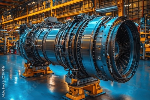 engine, jet, aircraft, aeroplane, turbine, aviation, industrial, manufacturing, factory, metal, steel, part, component, aerospace, technology, machinery, assembly, engineering, power, propulsion, air, flight, transport, travel, construction, maintenance, workshop, hangar, equipment, repair, tool, blade, fan, compressor, combustion, nozzle, exhaust, fuel, airframe, technician, mechanic