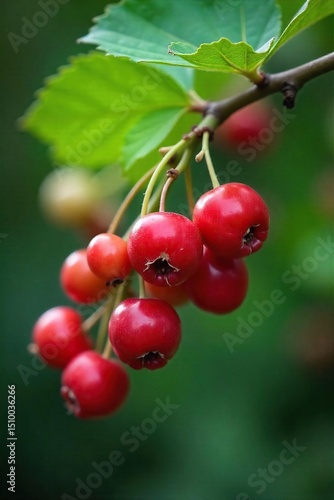 Close-up of a lush green branch laden with ripe, juicy berries, ready to be harvested The vibrant colors and natural texture are beautifully displayed against a blurred background , vine, stem