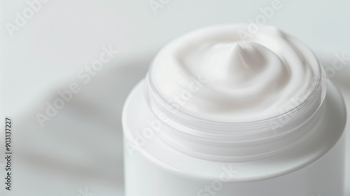 Closeup of a luxurious overnight collagen mask jar with the lid slightly open, creamy texture visible, elegant packaging, white background