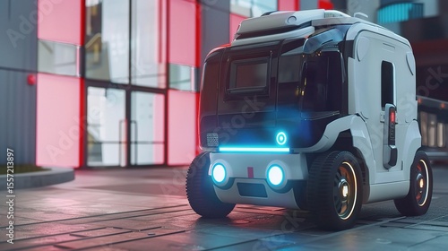 Close-up of a medical delivery robot navigating hospital corridors, autonomously transporting medication, lab samples, and medical supplies with AI-powered navigation and sensor systems, demonstrating