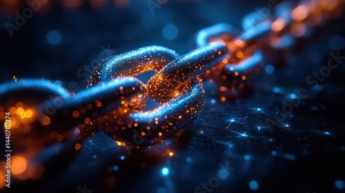 chain, metal, link, connection, blue, orange, glow, light, abstract, technology, network, security, strength, digital, datum, communication, cyberspace, interconnected, futuristic, computer, artificial intelligence, ai, cyberspace, cyber, web, information, system, structure, macro, detail, closeup, vibrant, bright, dark