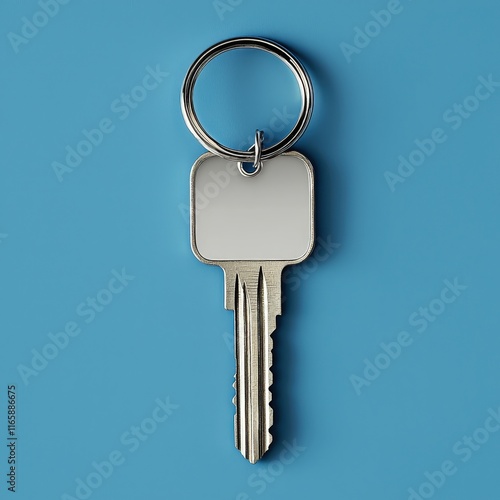 key, metal, closeup, blue background, security, unlock, closeup, object, silver, steel, hardware, minimalist, simple, household, tool, access, design, industrial, safety, precision, detail, outline, shiny, solid, hard-wearing, mechanical, keyring, isolated, minimalism, modern, essential, ring, lock, home, entry, protection, functionality, equipment, blue, metallic