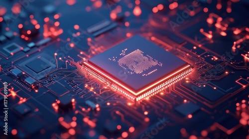 Closeup of a Modern C P U Chip Integrated on a Complex Circuit Board with Intricate Patterns and High-Tech Components