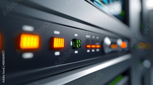Close-up of a modern industrial control panel with smart technology, high-resolution, no people, focus cover all object