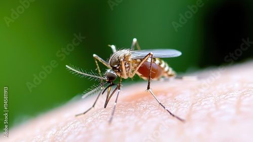mosquito, insect, parasite, bloodsucker, pest, disease, vector, carrier, bite, sting, skin, human, closeup, macro, photo, wildlife, nature, animal, fauna, arthropod, diptera, leg, wing, proboscis, abdomen, chested, head, antennae, eye, detail, sharpened, sharp, background, green, summer, spring, health, danger, infection, malaria, dengue, virus, transmission, control, prevention, repellent